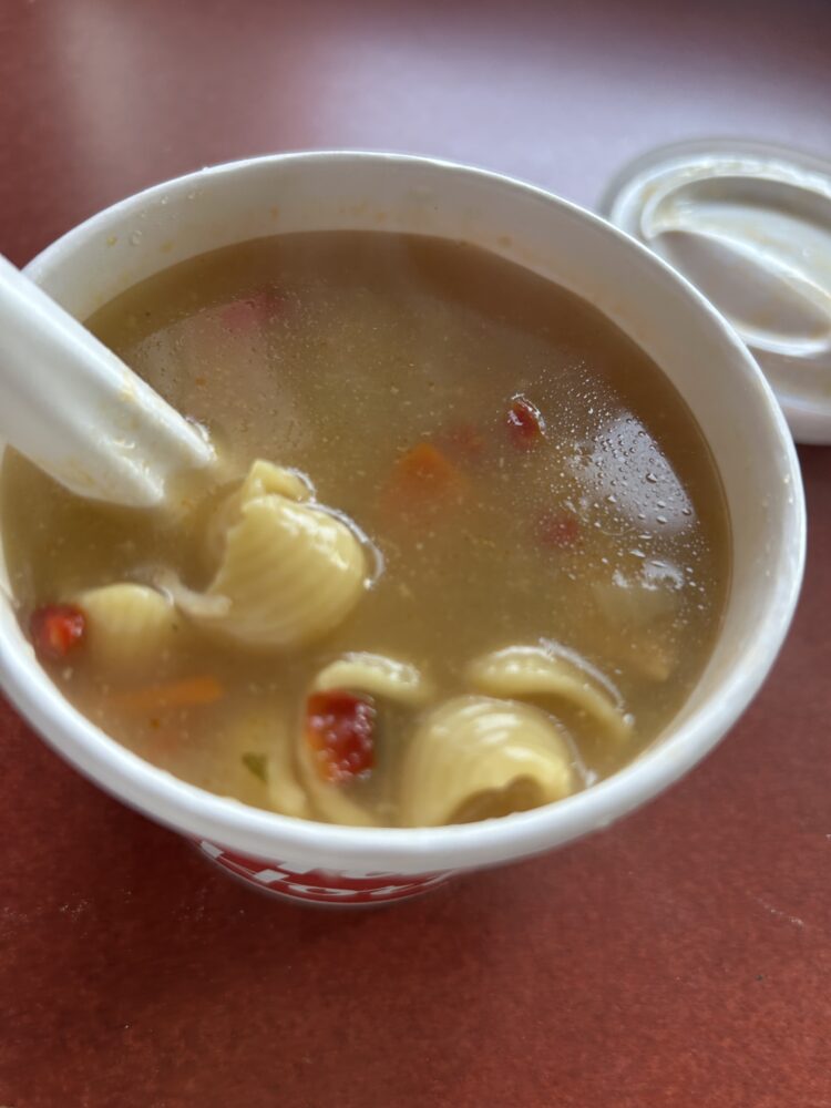 スープは Chili($5.99) と Chicken Noodle($4.49) の2種類があり、どちらも具だくさんでとても美味しかったです。