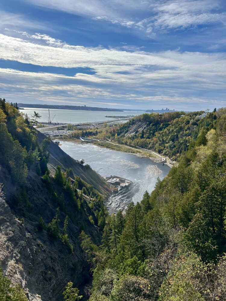 また、展望台(Manoir Montmorency周辺)からは滝全体とセントローレンス川を一望。