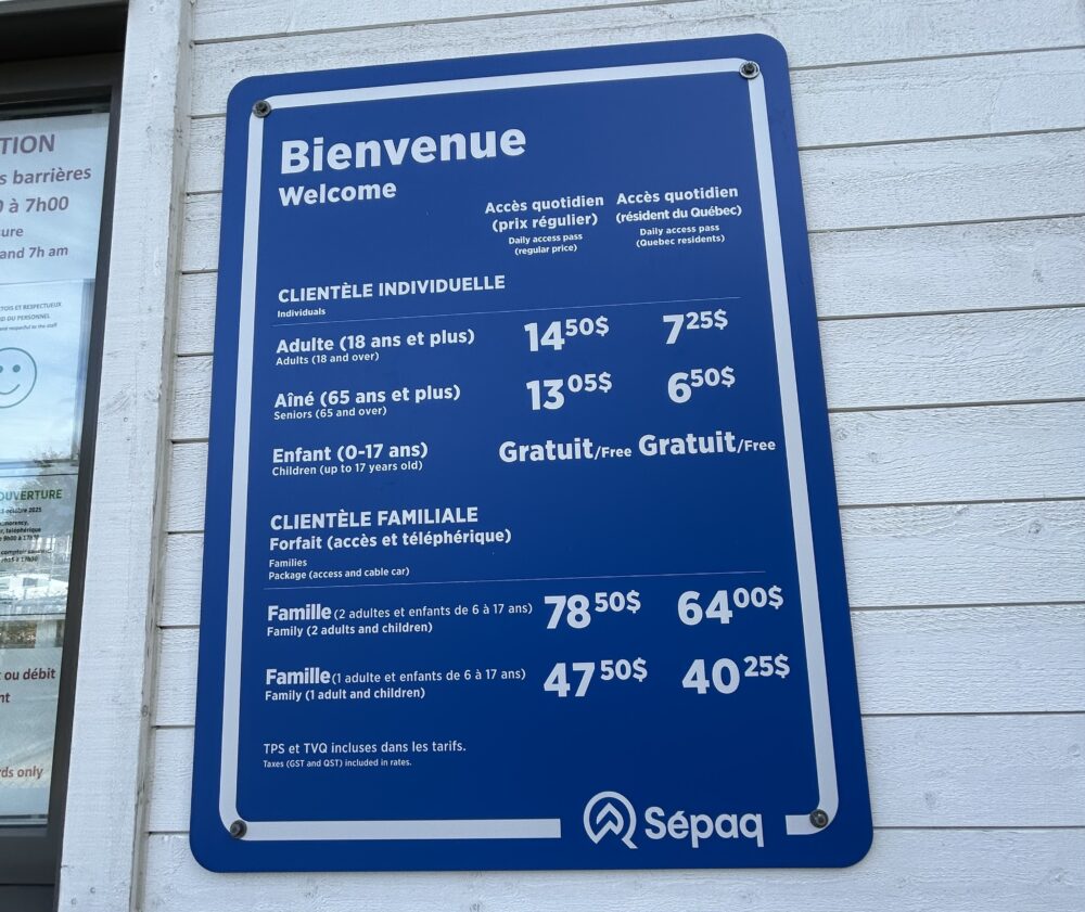 滝の敷地は「Sépaq(セパック)」が管理しており、入場時にチケットを購入します。