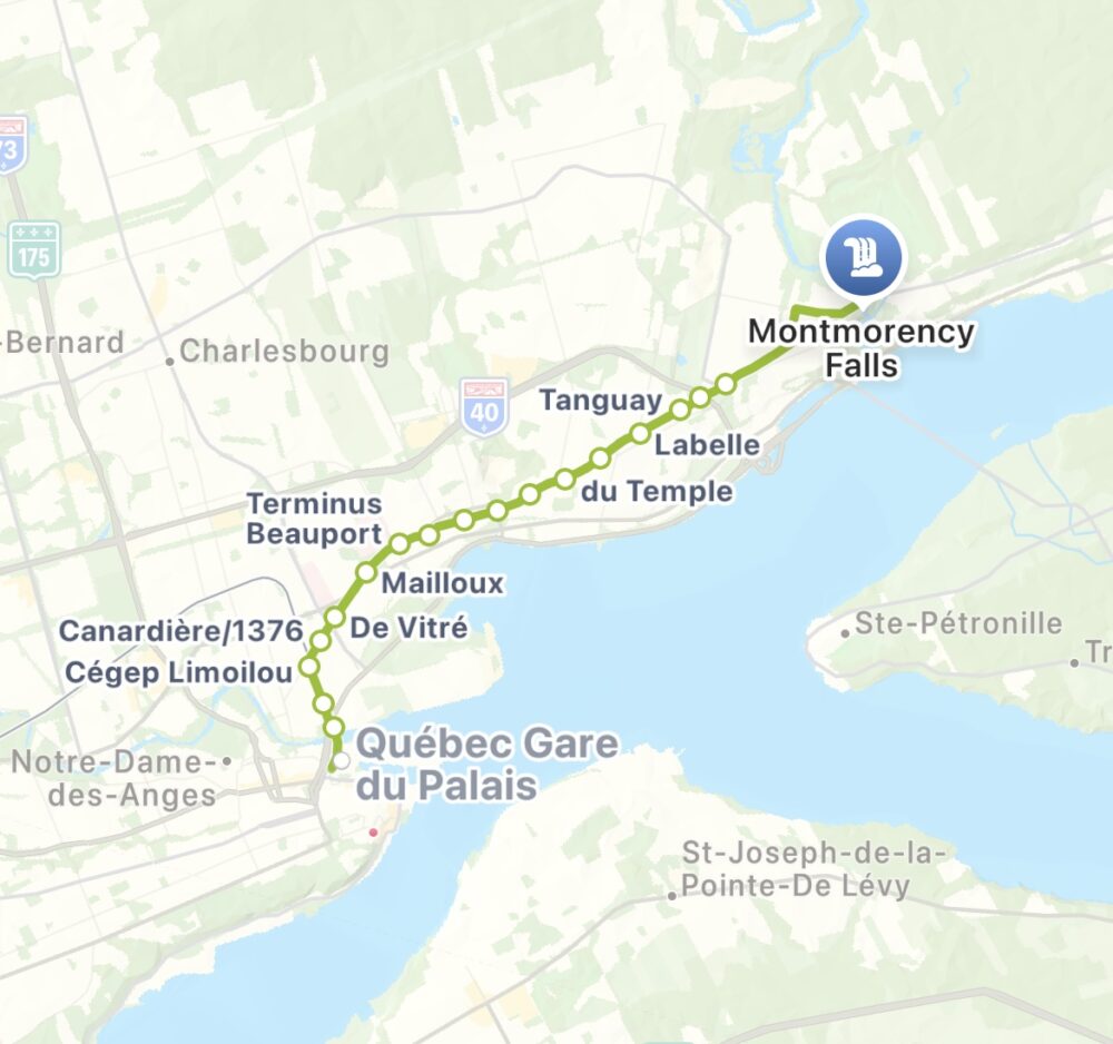 ケベック市内の中心部(Gare du Palais駅)からは、路線バスで約40分。
