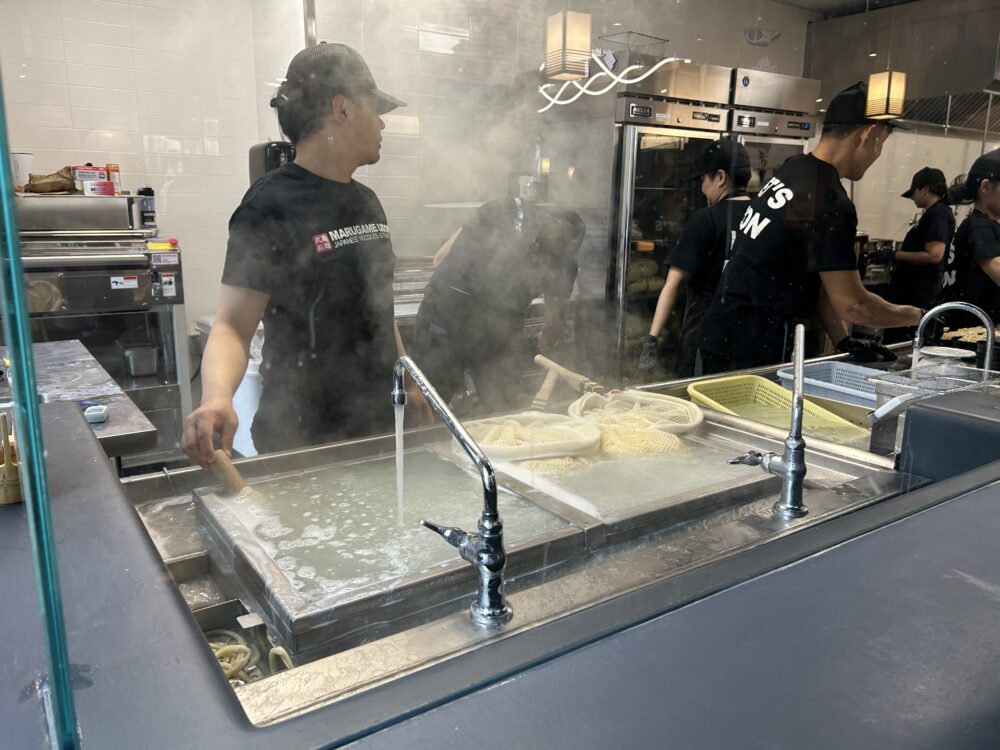 目の前でうどんを茹でている様子も見られて、ライブ感があるのも魅力。海外にいながら日本のあの雰囲気をそのまま味わえます。
