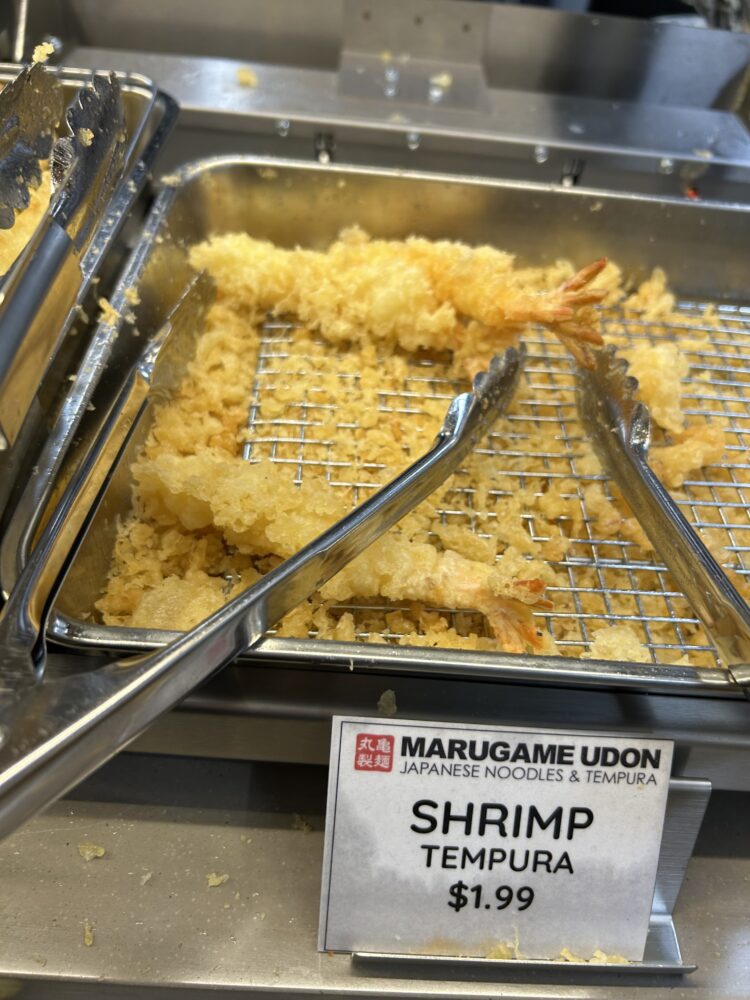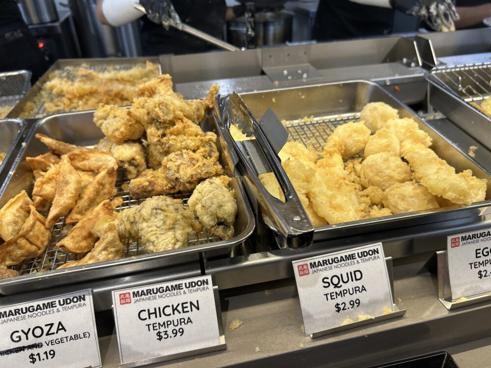 ちなみに、天ぷらコーナーは、卵やちくわを始め、唐揚げやズッキーニなど種類豊富です。