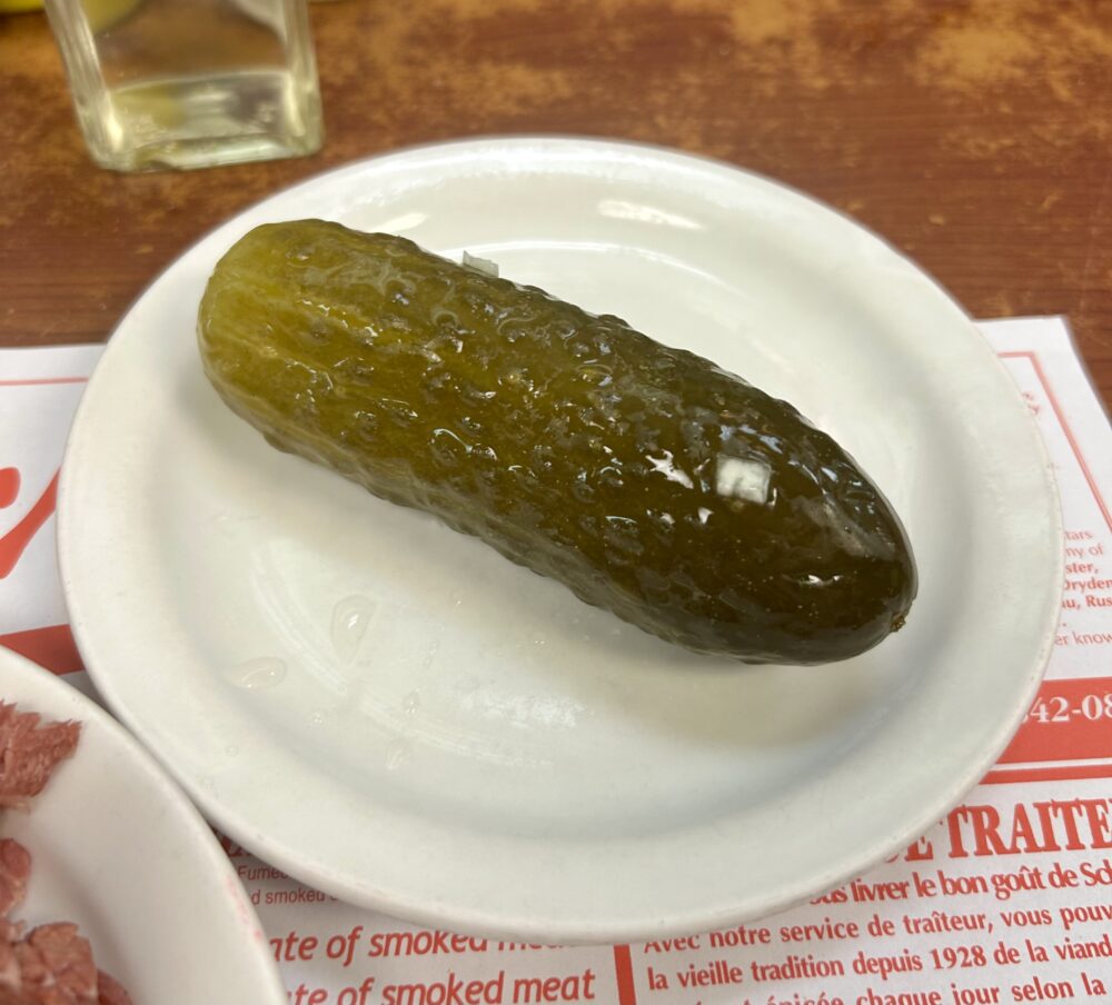付け合わせのピクルスはとにかく大きく、甘さはゼロで酸味強め。