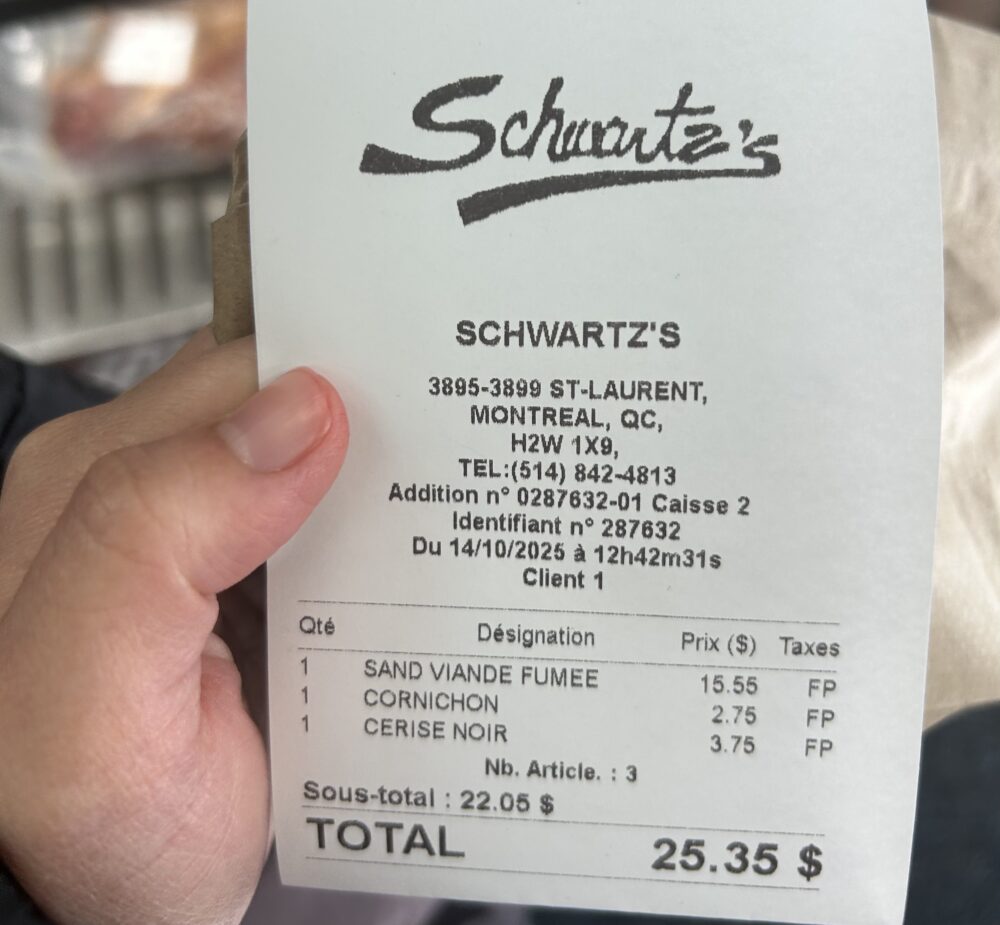 モントリオール滞在3日目のランチは、ずっと気になっていた名店「Schwartz’s(シュワルツ)」へ。SNSやガイドブックで話題のスモークミートサンドが、どんな味なのかついに体験してきました。