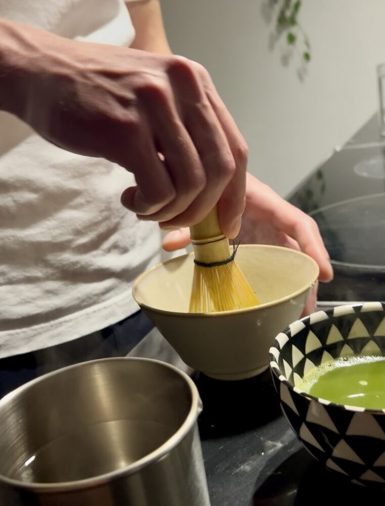 ただ、ある日彼から「いつもハンドミキサーで抹茶を作ってるよ!」と聞いて、私は少し驚きました。確かに泡は立つけれど、せっかくだったら 日本人として“茶筅(ちゃせん)”で点てる抹茶を知ってほしい。そう思って、茶筅と抹茶茶碗をプレゼントすることにしました。