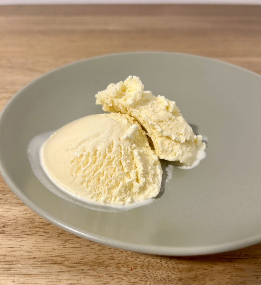 一口食べてみると、バニラの香りがふわっと広がり、濃厚でコクのある味わい。生クリームと卵黄のリッチさが際立っていて、どちらかというと日本の「高級アイス」に近い印象です。