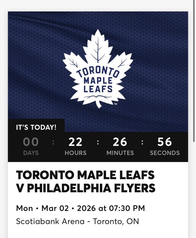 会場はダウンタウンにあるScotiabank Arena。対戦カードは、Toronto Maple Leafs vs Philadelphia Flyers。