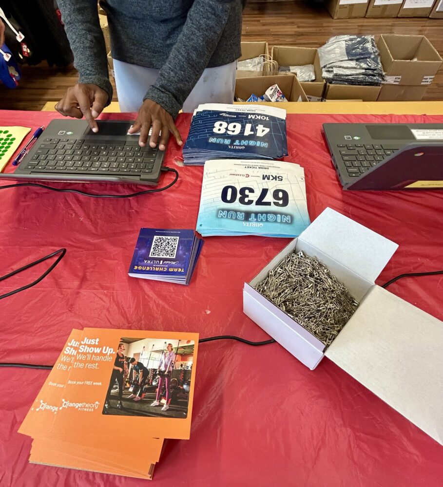 受付では名前を伝えるだけで、特にIDや事前準備は不要。数分で手続きが完了しました。机の上にはゼッケンがずらりと並び、スタッフの方が番号を確認して手渡してくれます。まさに「手ぶらで行ってすぐ受け取れる」スタイルです。