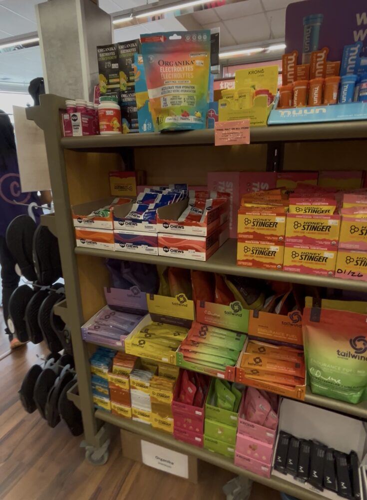 大会の受付ついでに、補給食や新しいウェアを購入する人もいる様子でした。地元のランニングコミュニティに根付いた雰囲気があり、ランナー向けの落ち着いたショップという印象です。