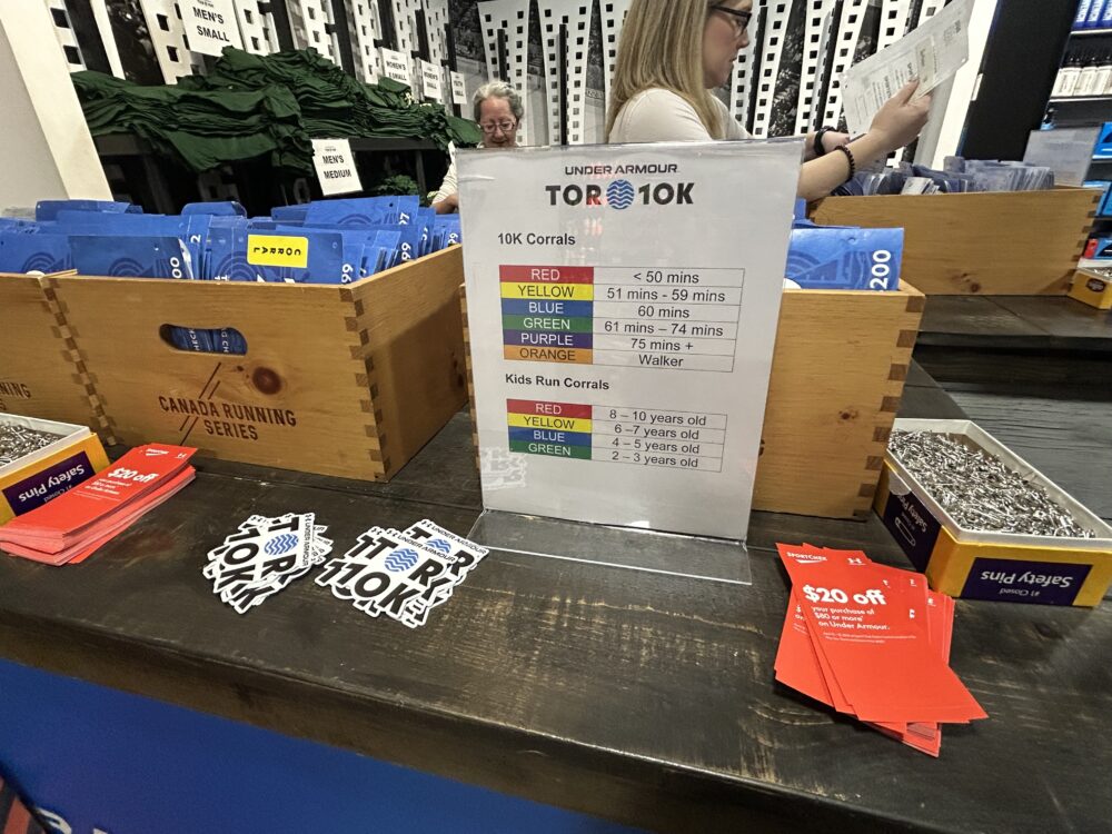 カナダ・トロントで4月に開催される人気レース「Under Armour Toronto 10K」に参加するにあたり、私は大会前にビブス(ゼッケン)の受け取りをしてきました。
